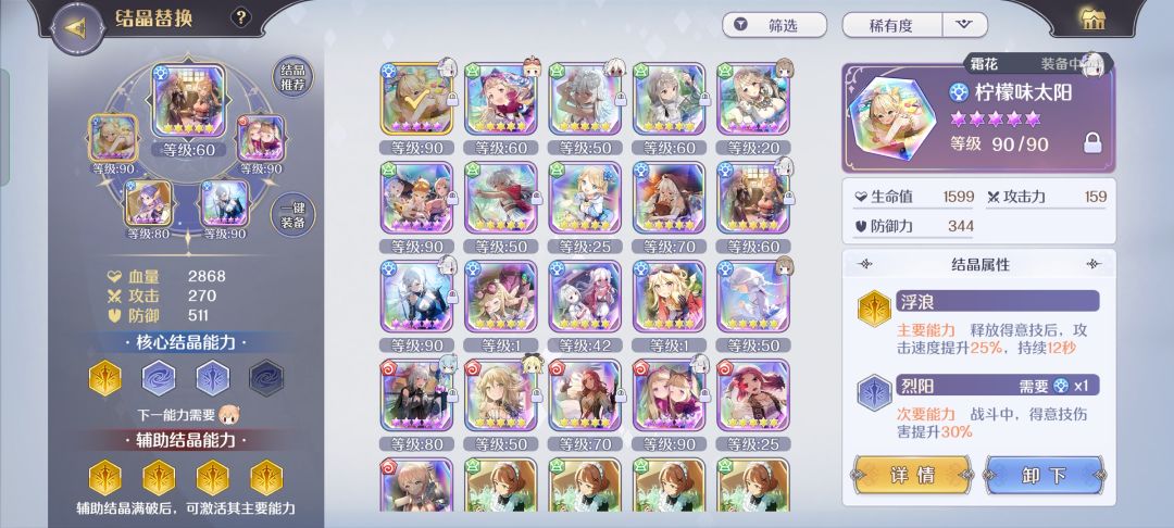 副结晶用送的柠檬跟决心,柠檬增加角色手感真的是好用,然后是森林伙伴,没有的可以用其他的满破蓝色代替。最后个位置放上个版本送的暗结晶美滋滋![[嗒啦啦2_哈哈]](https://img.tapimg.com/market/images/1bbca193685a619674d8260ad0ed7455.gif)