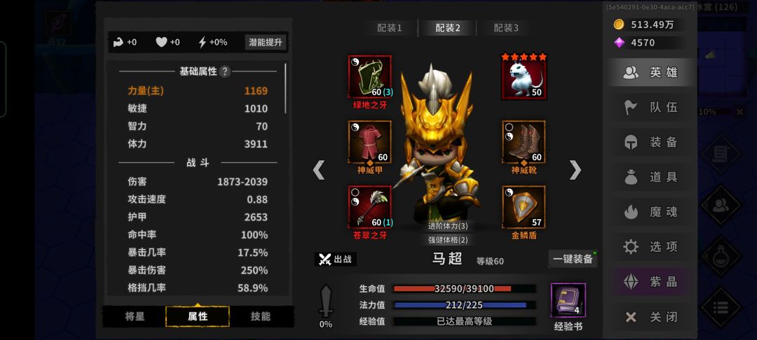 工具人3号,马超,头打不动,主手全技能加一,副手奉献盾,其余减精英。符文,进阶体力,强健体格(刚好装备自带一个,我就给马超打了一个这个符文,有体力充沛的其实更好)。野生套装备选带减10精英,体力,回2怒的。这套进场不能满怒,要撤退再进,靠战前魂满怒了再开打。还有速度要最慢,本来打了不动,他的速度就是最慢的,不要专属和加速词条,他速度比周瑜快的话,后面每次放大会让周瑜少一次攻击。技能42