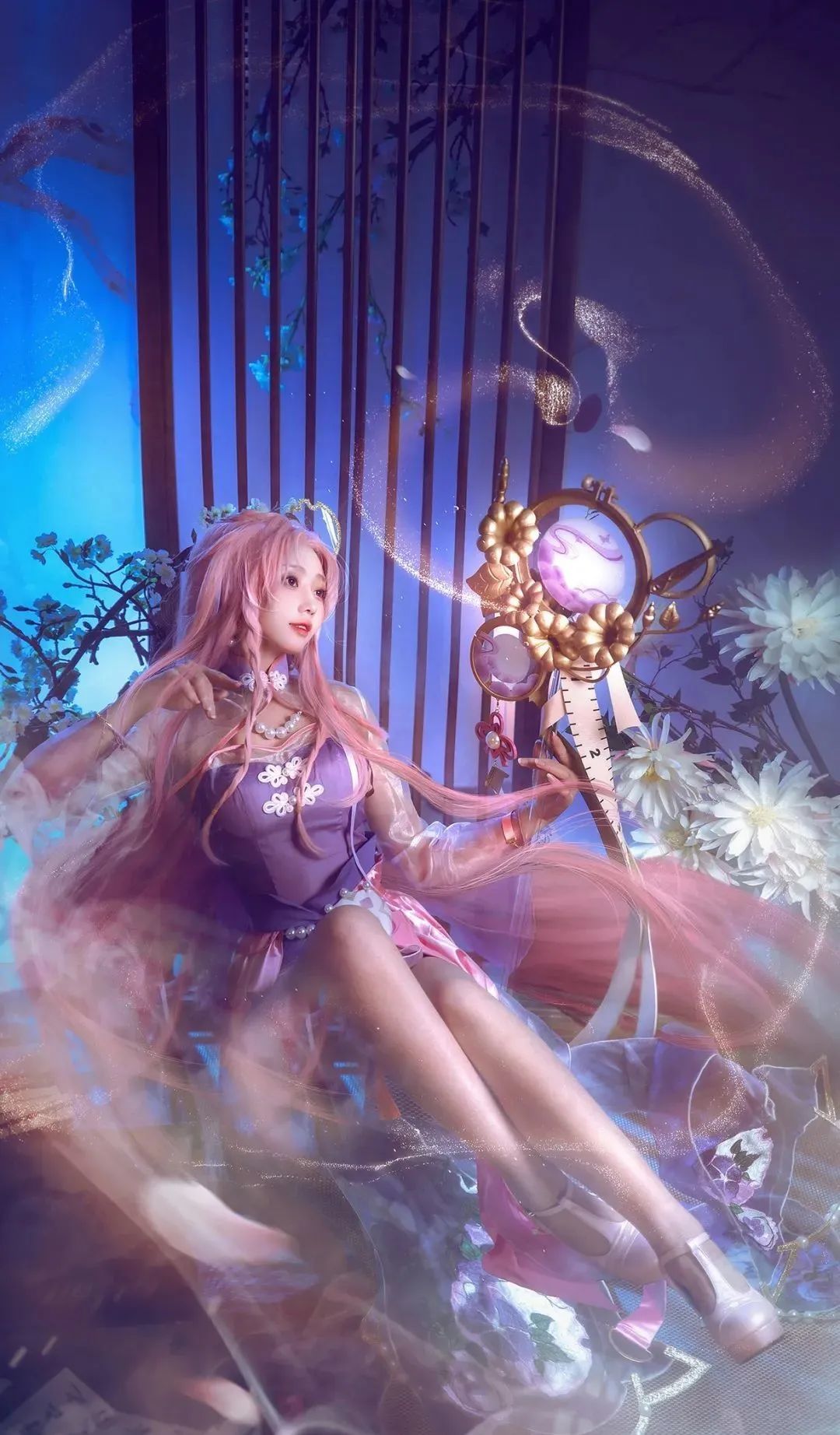 cos:王者荣耀王昭君乞巧织情,现代的裁剪方式中注入中式旗袍的元素,通过非遗苏绣技法,在薄纱上呈现出柔软的浪漫情调