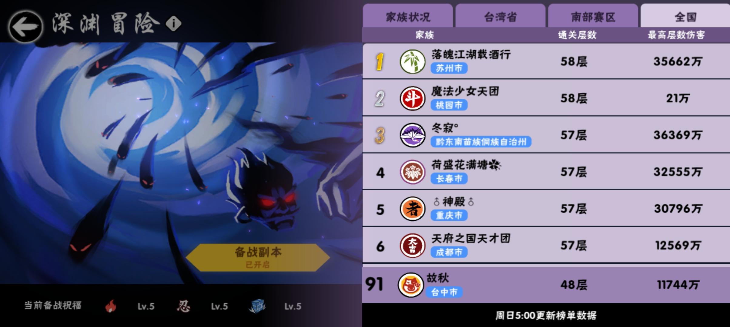 能够有时间参加深渊家族战