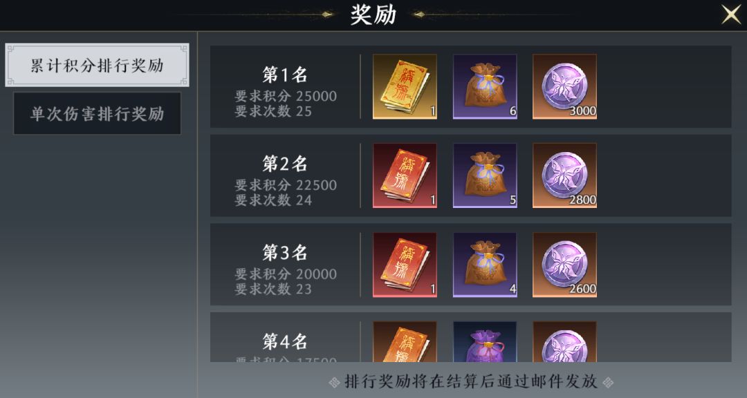 *排行奖励请以游戏内最终呈现为主