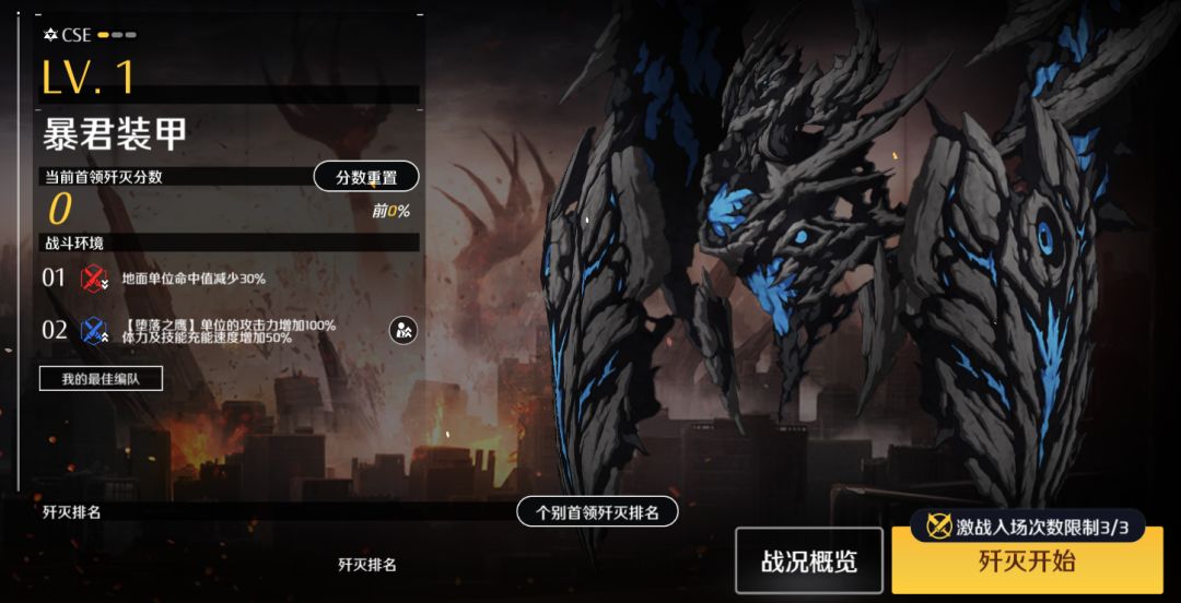 本周四更新维护后,激战支援第21赛季正式开放。本赛季的挑战BOSS“暴君装甲”的战斗环境内,我方地面单位的命中值会减少30%;BOSS“仲裁者TYPE_A”的挑战环境中,【ESPR】的角色单位参战将在攻击力、体力以及技能充能速度得到一定程度的提升。老板可根据挑战环境,提前制定参战策略。