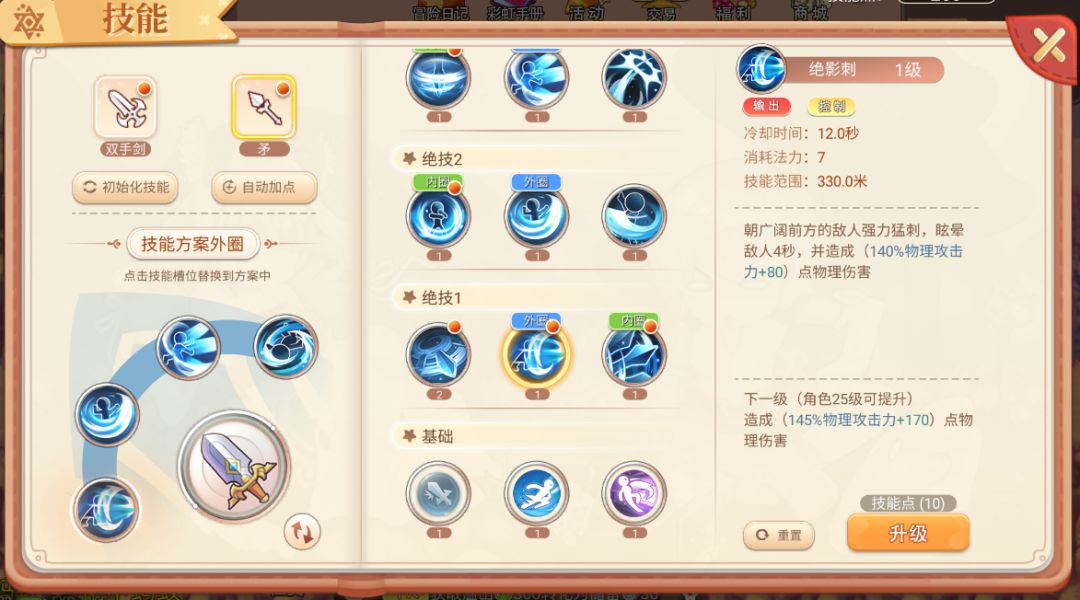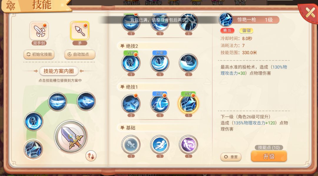 外圈技能:绝影刺、绝气枪、连决枪、龙枪(风)(2322)