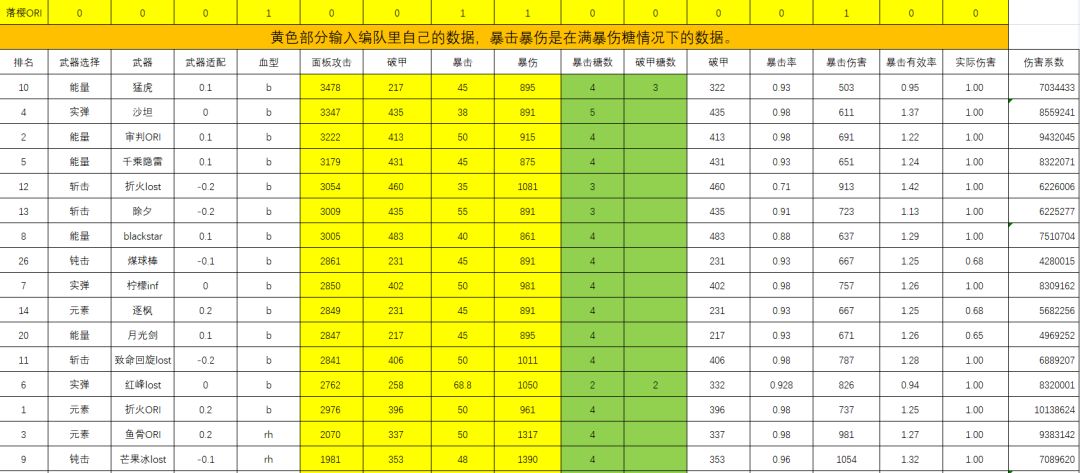 计算器显示的最佳使用依次为:折火ORI,大剑ORI,再是鱼骨ORI。其中这计算器里面没有算武器自身的打击伤害的。如果综合武器自身打击伤害来看,排名依然合理。