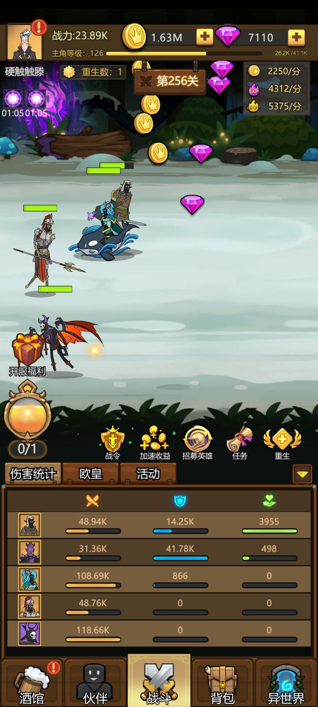 金币和经验资源,随便用,随便挂挂机开开箱子就够你重生后用。