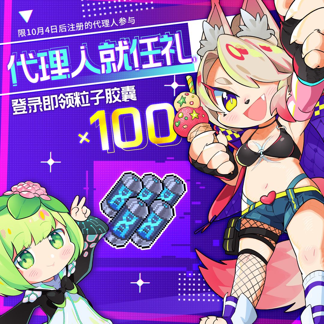 我们曾经在开服的时候通过连续8日的邮件发送了共计【粒子胶囊*100】的补偿资源,邮件的领取截至日期为10月4日0:00——即10月4日后注册的代理人无法领取到这批资源。在这段时间给新就任的代理人带来不好的体验,我们感到非常抱歉,我们也一直在讨论如何让后续新注册的代理人也能领取这些资源,因此,我们将在明天的维护更新后,增加【新就任代理人登录有礼】福利任务。