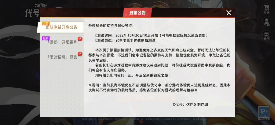 冲着海贼王的IP和童年参与了这次抽号测试,虽说后来情怀淡了,但对海贼王系列都还是喜欢来玩一下,整体体验下来《伙伴》算是我感觉玩的比较舒适还有意思的PVE手游了。