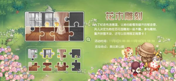 2.活动期间,每天前五次雕刻,每次可以获得5枚郁金花朵和1块拼图。