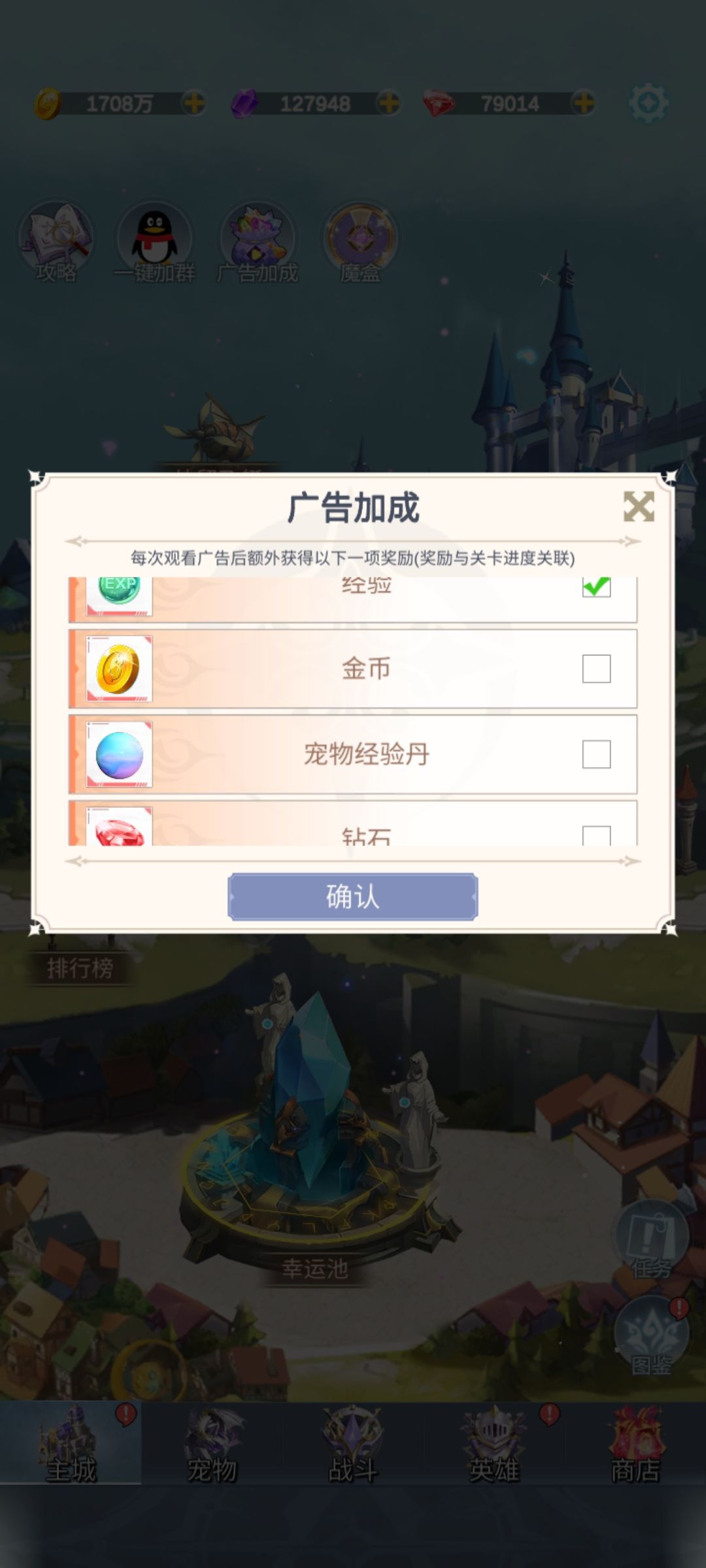 广告加成优先选择经验加成