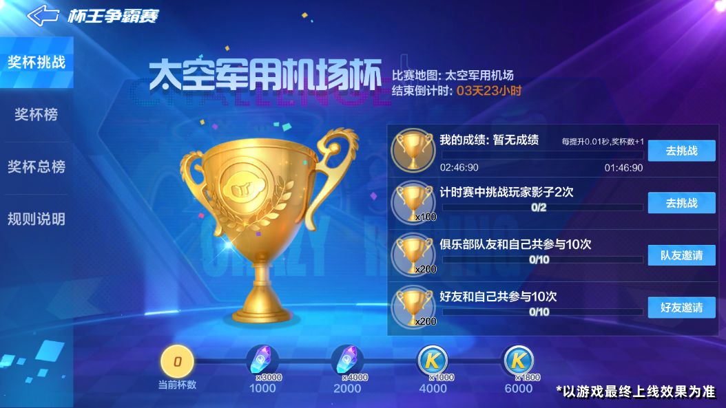 活动期间,车友们可通过完成活动的对应任务获得奖杯,并且兑换能量水晶和酷币。