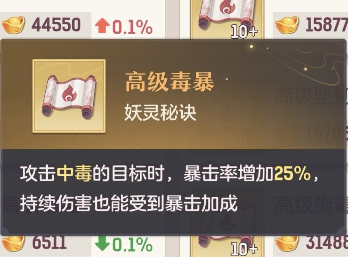 最后来谈谈技能,我个人的理解,打书应该打:高级(连击、施毒、剧毒、毒爆、闪爆、隐身、神佑、最好再买个神石将他被动天赋打掉带上个感知或者反击)这样的双高链子比较容易出,除了连击,神佑其它的技能不算太贵。建议如果考虑买神石,先讲其他技能打上,打好后神石技能留给连击(空白技能格必定打中,不会互顶)