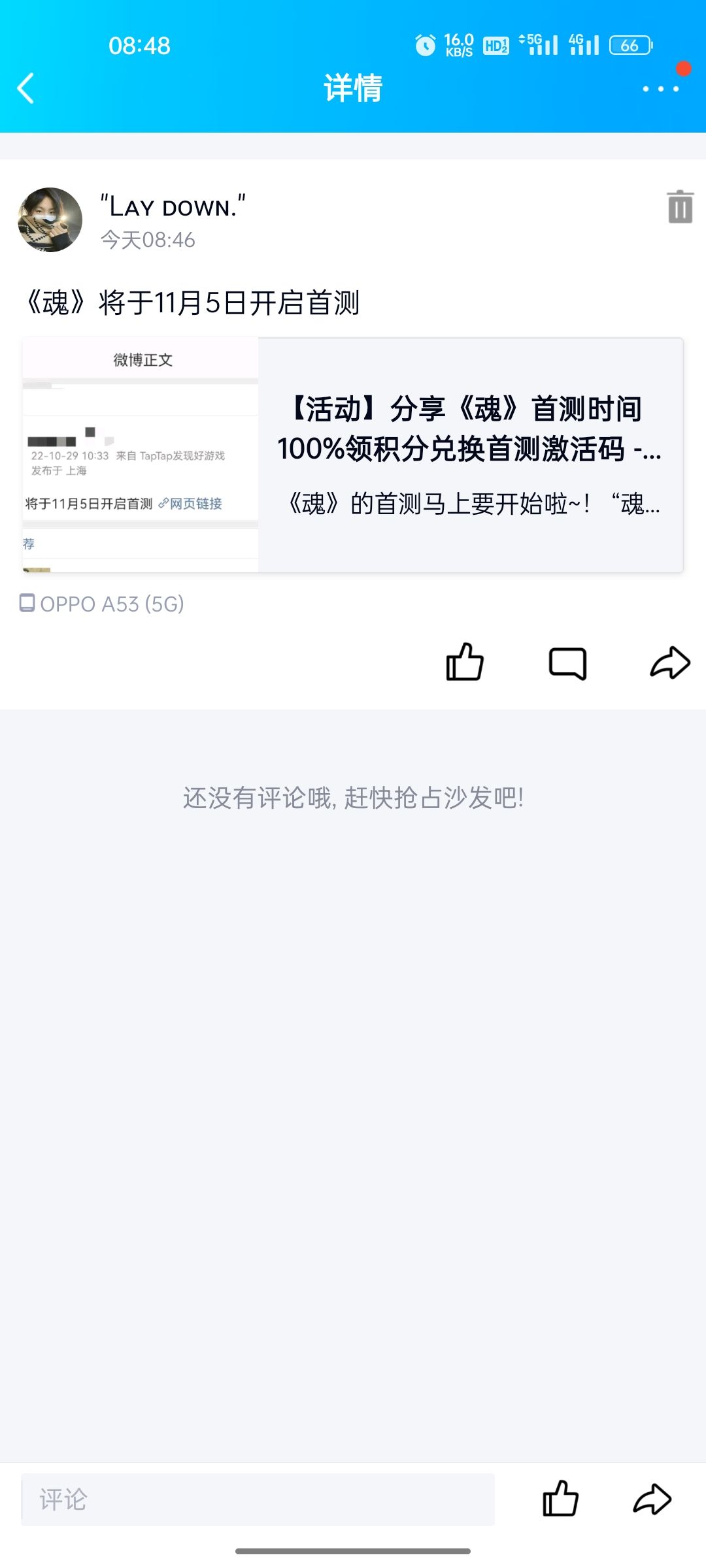【我来参与《魂》11月5日的首测啦】 用户号165208641