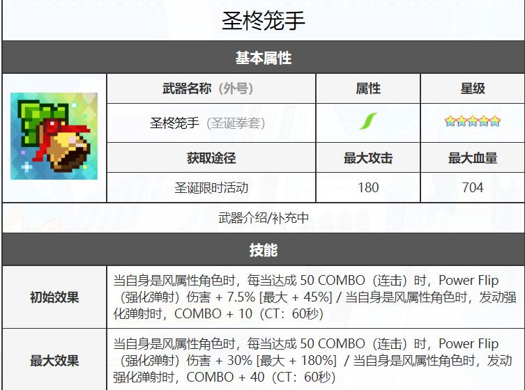 除了新角色之外活动还新增了三个武器,其中圣诞杖和四星武器竞争不过超风武器所以满破收藏即可,而另一个五星武器铃铛是风属性pf类武器