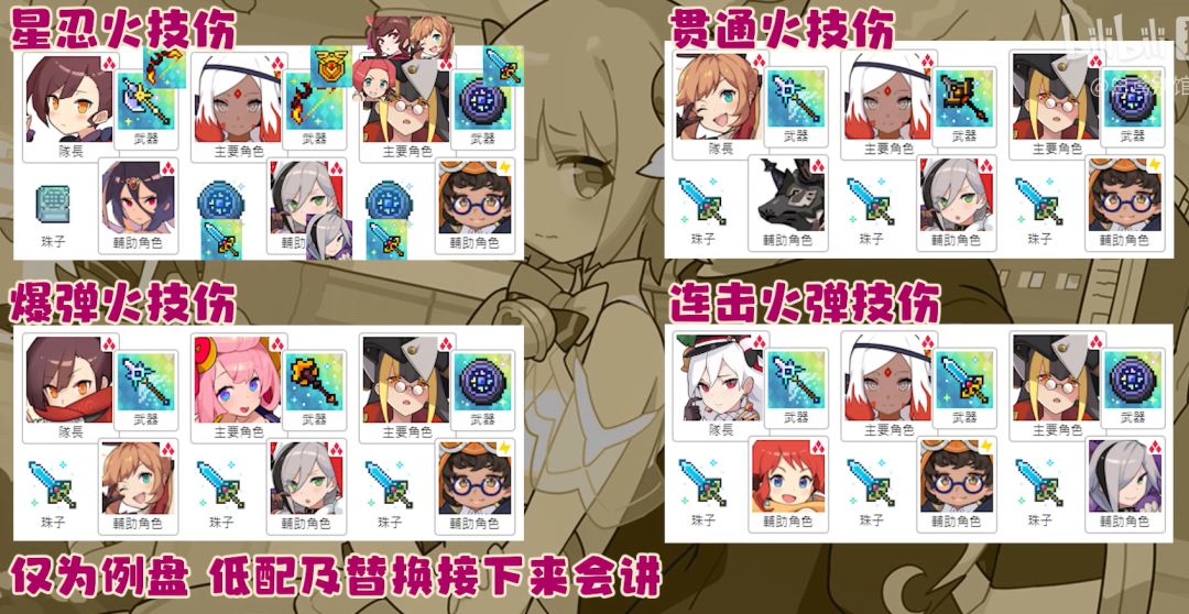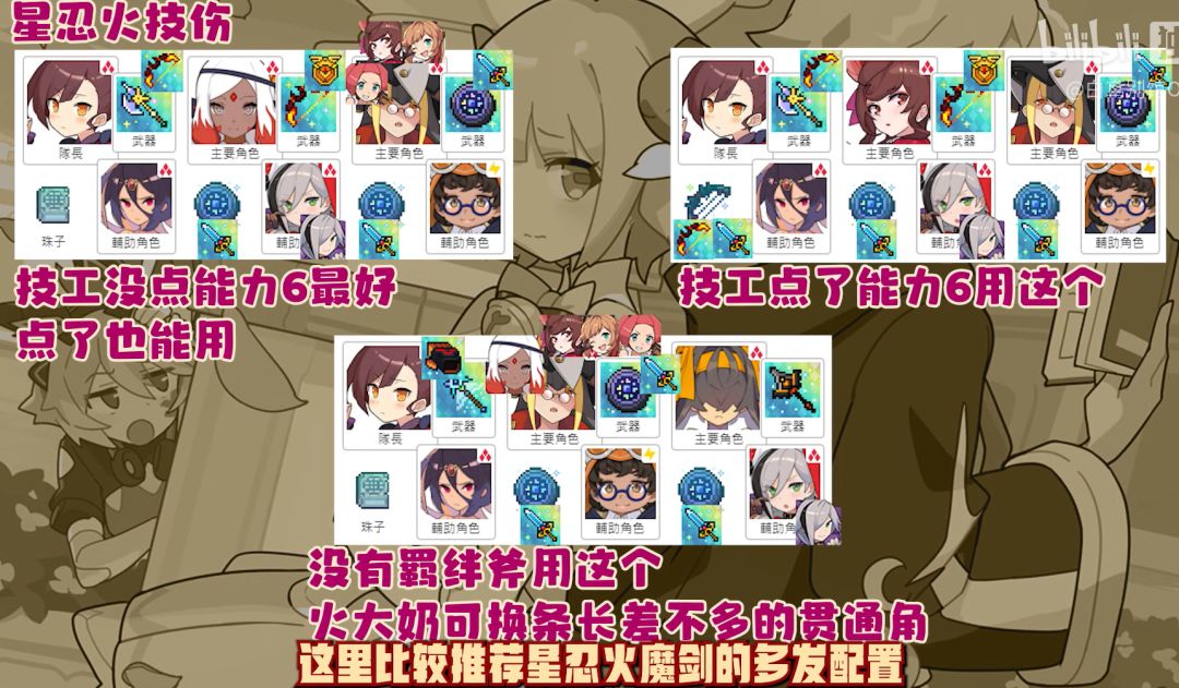 其中工具人需要星忍开局200%充能,充能书随意但是要满足要求,暗叉防止被卡住