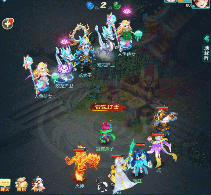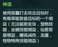 在以上场景中,凌霄孩子在使用“雷霆打击”时,就直接把对方逍遥仙的“桃花护体”效果驱散了;这就是“神雷”技能生效的结果。