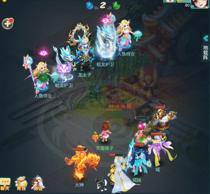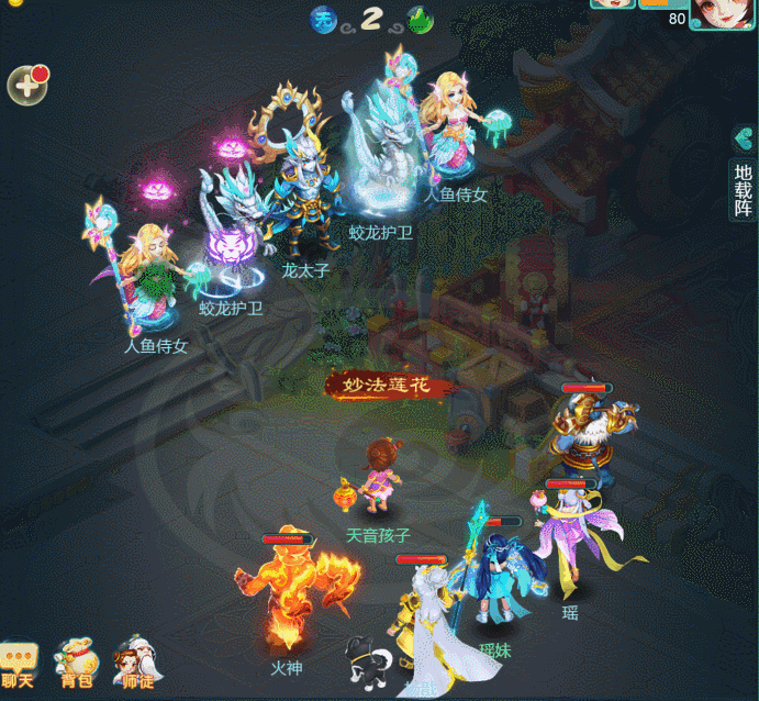 天音孩子上场的同时,“佛光”技能生效,直接给场上血量最低的85级杨戬回血850点。