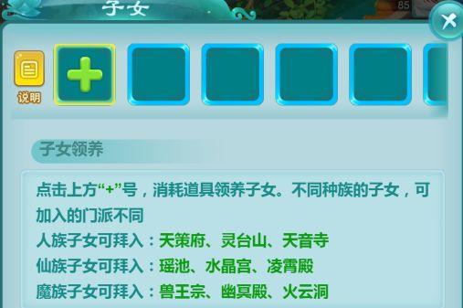 话说自从前段时间出了3个新门派后,就有不少的少侠询问瑶瑶,相对应的子女是不是也要上线呢?哎呀哎呀,这个肯定会有的啦!