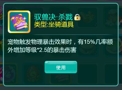 另外也可对宠物内丹、驭兽决等物品上锁的: