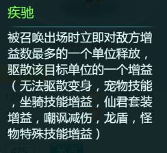 后-游龙:被召唤出场时,为召唤者附加一个游龙状态(提高法连概率,无法与游龙叠浪叠加),持续4回合