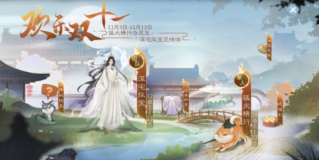 但光棍节的意义不止在于对单身菌菌的关怀,菌菌更是要为小伙伴们带来多重福利!猛犬横行夺宝箱,深宅组队探珍宝。经典时装限时返场,更有活动期间抽奖免单最高100%消费灵玉返还!