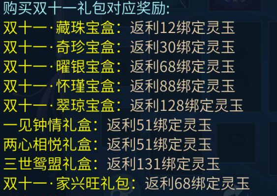 购买双十一礼包对应奖励