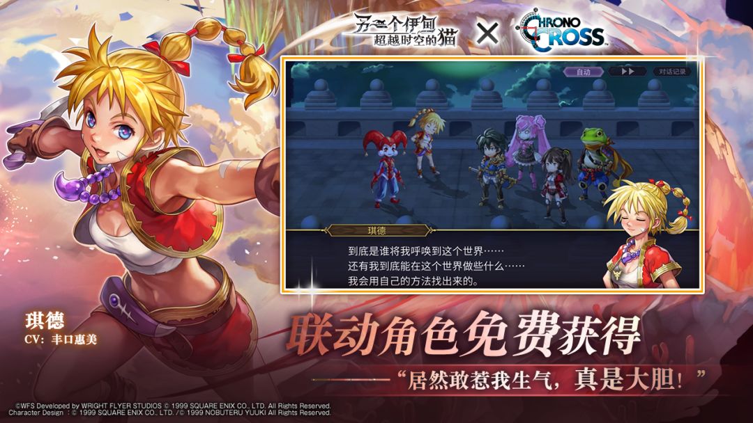 在本次联动中,将会有三位新角色「赛尔杰」、「琪德」、「月读」。他们是《超时空之轮2》中相当受欢迎的角色,在联动中将作为可操作角色,首次附加配音登场。随着联动关卡进度将会加入成为伙伴。同时在联动关卡中,山猫、格伦、星之子也将登场哦!