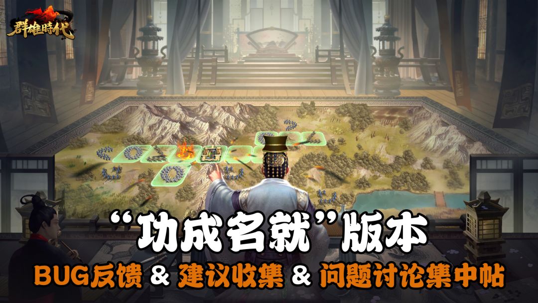 “功成名就”版本更新已经完成,欢迎各位主公将更新后遇到的问题、疑问、BUG按照下方格式反馈至本帖评论区,我们会安排专人进行跟进、答疑;