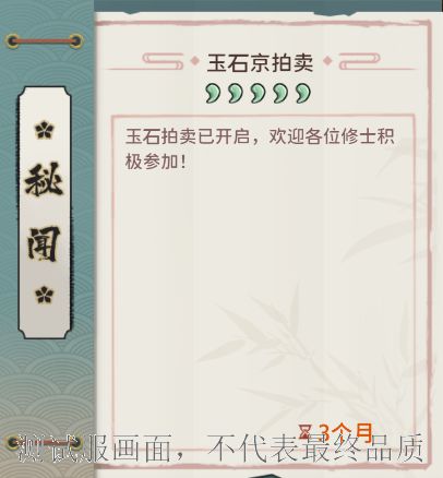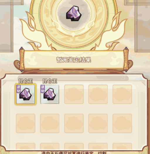 拍卖建筑中会展示多种未鉴定玉石,每块玉石都有底价,玩家可以在拍卖前先进行玉石鉴定,鉴定流程与盘玉坊相同。