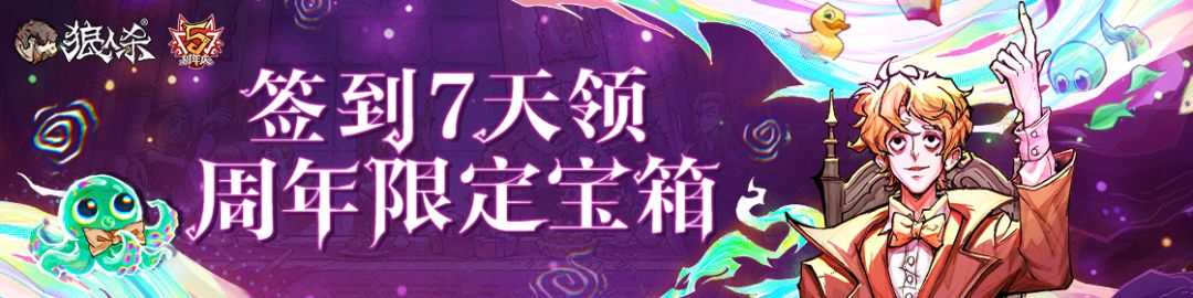 【已开奖】狼人杀官方五周年活动来袭,签到祝福领取周年宝箱及周边礼包!
