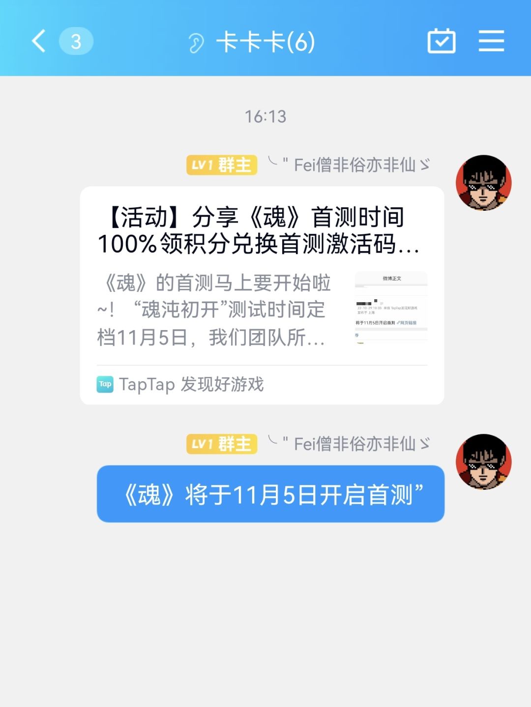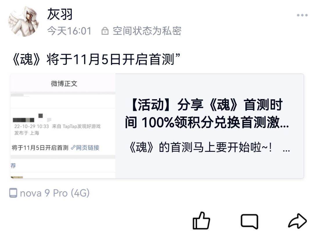 我来参与《魂》11月5号的首测啦