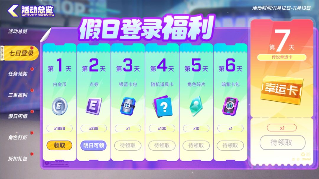 11月04日至11月22日期间,少年们登录游戏进行签到即可领取对应奖励哦~