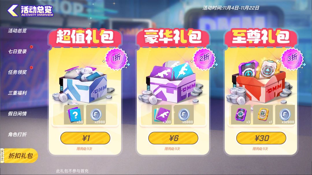 三种礼包每个限购一次,超低折扣价仅限活动期间哦~千万不要错过啦!