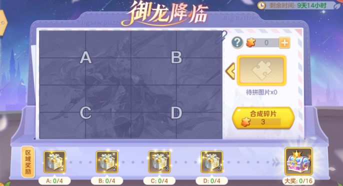 活动期间,参加日常玩法将随机掉落拼图碎片;每次消耗3个拼图碎片即可合成1张拼图,将其放至正确位置即可点亮拼图;每次点亮拼图都可获得随机奖励,点亮指定数量的拼图也有对应的丰厚奖励哦~