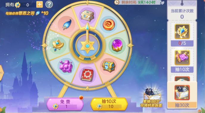 ✦每抽必出罪恶之羽x10,累计抽取30次可领双生时装盲盒;