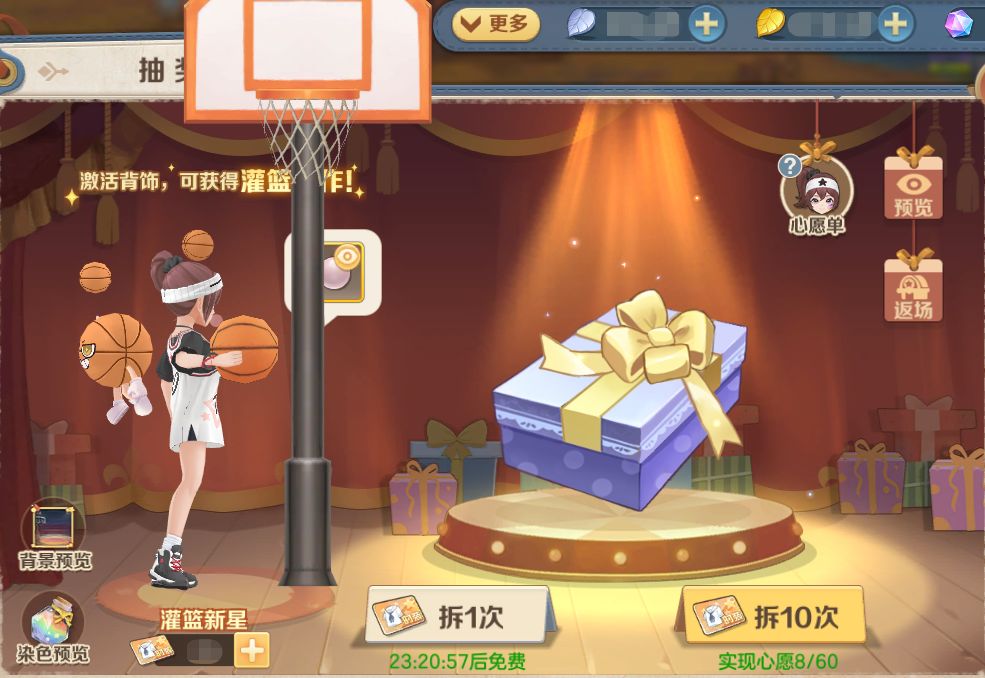 2、对[灌篮新星背景礼包]进行了调整,购买后可以赠送给自己的好友啦,快去给小伙伴分享吧~