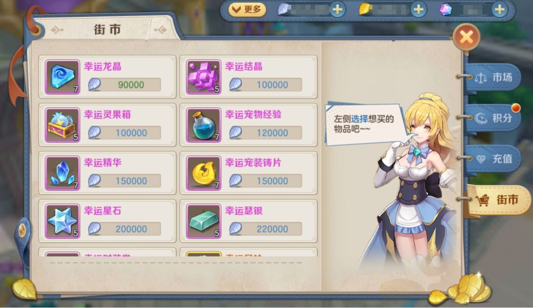 1、市场新增[街市],里面有着可以用银叶子购买的商品哦!还有几率获得大量成长道具;