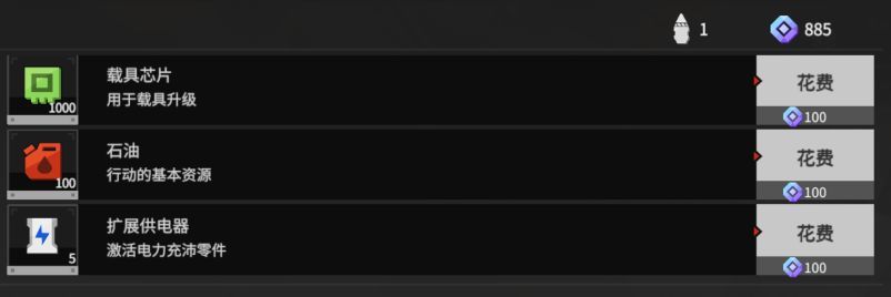 然后就是这个带来的影响,一个同类物资可以用黑石买两次,以芯片为列也就是2000芯片,而2000芯片同等的平民玩家要打起码七八个地块才能追上,也就是350-400石油,而芯片用来升级载具也就是一个载具可以升级: