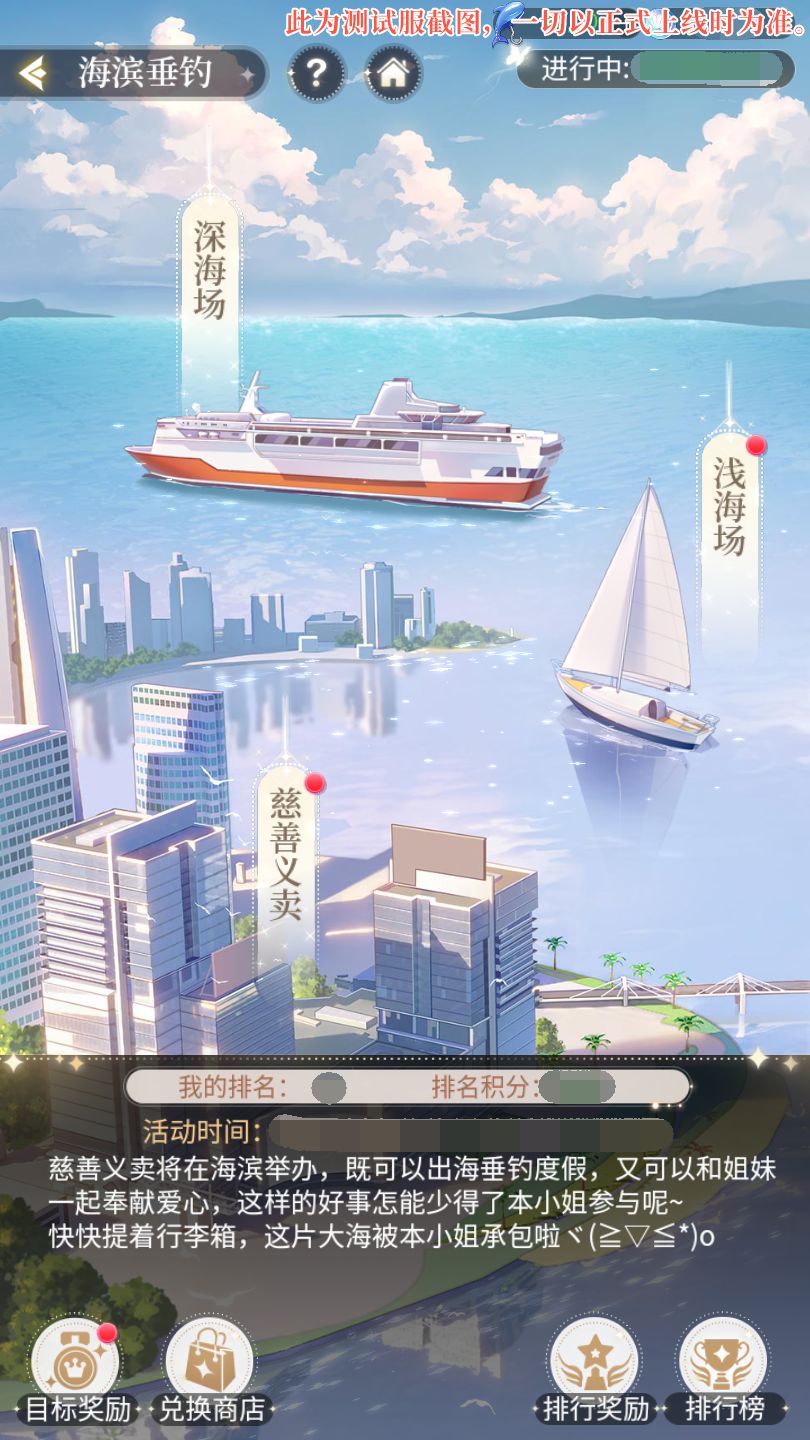 深浅钓场:分为【浅海场】和【深海场】,两个钓场进度互不影响,每次只能游玩一个水域场,不可同时进行游玩。