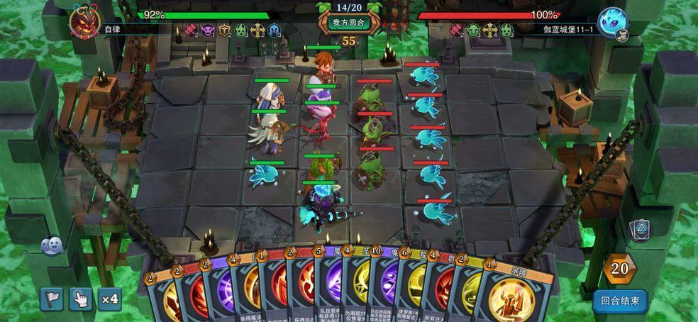 大部分成就需要在珈蓝里刷,一般找带小树人,哥布林战士,小白,小精灵这样的战牧队做成就,如下为最佳做成就的图珈蓝城堡11-1-3左,不要找带民兵战士,寒冰天使这类的战士牧师队伍,会叠加战力。
