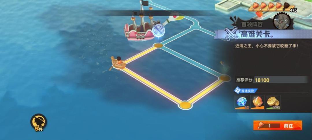 寻宝探险每次关卡首通都会给大量钻石,还有伙伴升级用的料理,伙伴碎片,贝利