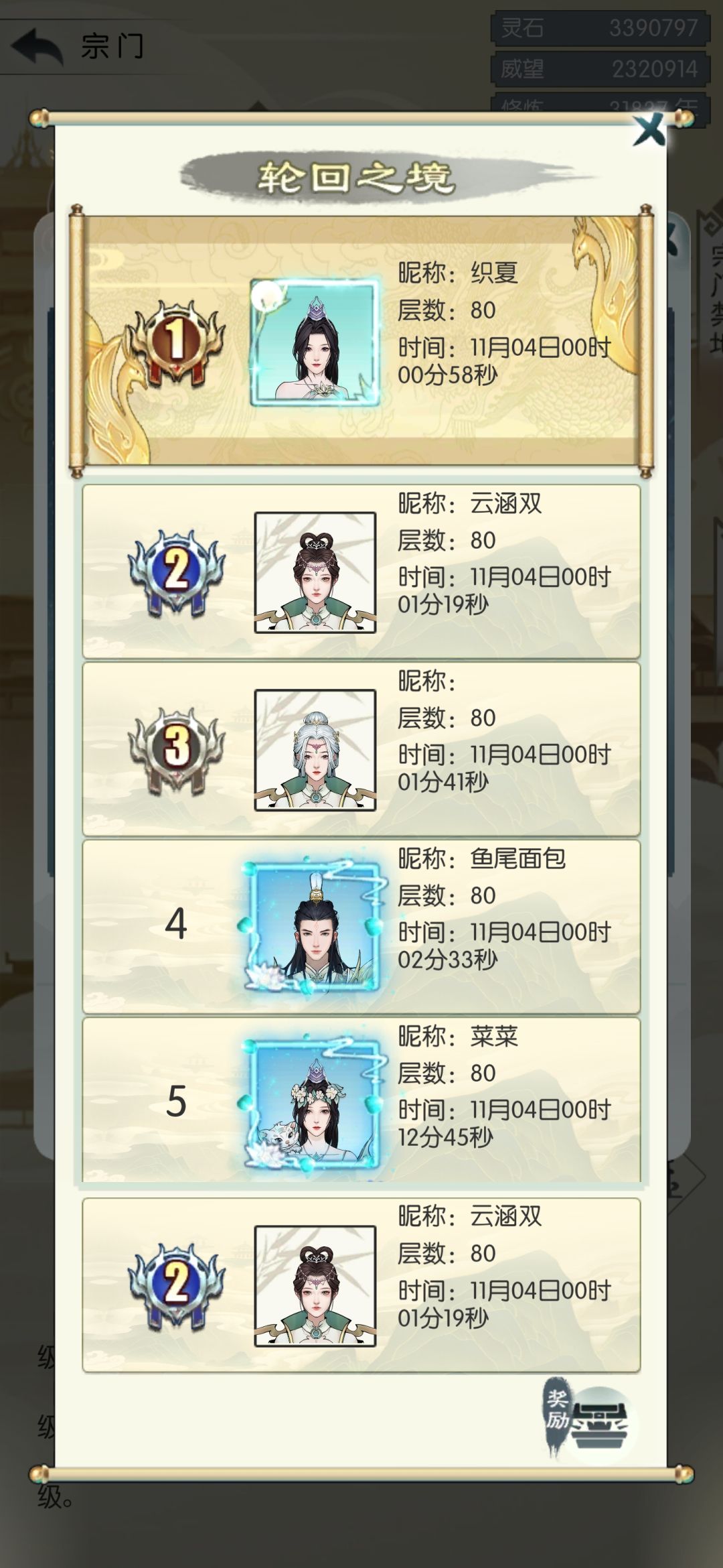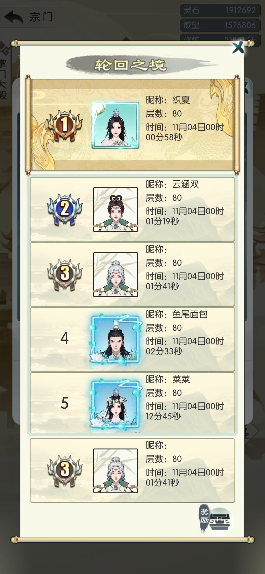 (另外7把剑集齐好像是3-6-9回合造成真气30%伤害忘记了)因为是竞速玩法如果你想冲排名的话冲关过快可能会在70层后面遇到打不过首领的尴尬情况,所以旗子后面最后留几个,另外如果你要冲排名,可以考虑在可以稳定打小怪精英后,遇到门直接走我是比较黑的,两个小号其实4天就可以通关因为要等下人,所以没有再打,运气比较不错的话拉满四天就可以通关,而如果选择慢通那奖励这边推荐,每天拉一次或者两次打5天即可通关。纯摆烂留建议怪全打佛系随便玩,但轮回一地整体通关下来提供的秘宝升级材料不少,切每周都有我这边推荐慢打通关比较不错![[嗒啦啦4_捂脸]](https://img.tapimg.com/market/images/9ee8426de6eb6863c01e62c14ca8eef7.gif)
