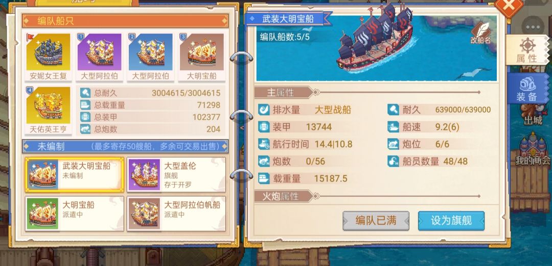 我之前就很喜欢大明宝船,别人用盖伦,我没碰盖伦刷了很久材料做了两艘大明跑商(甚至脑抽倾家荡产改全货仓,全货仓的大明你见过吗