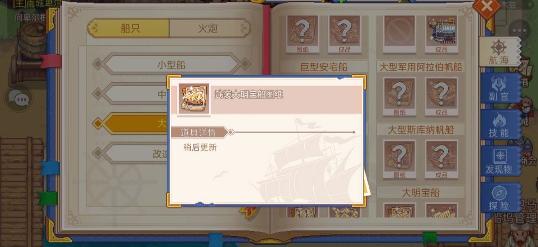 )综上所述我每天都要去航海笔记看看武装大明,我在商会跟小伙伴都说过一出武装大明我就要肝几艘,所以我清楚的记得↓