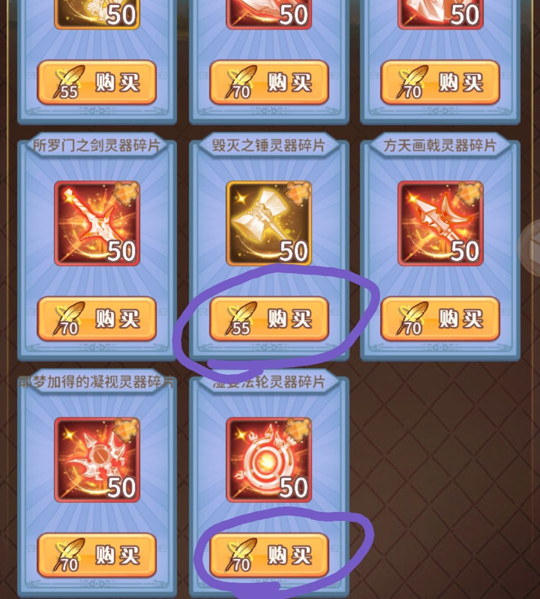 ⑩女神商店(羽毛这个现在产出很少,换神魔和灵器的,灵器这个需要注意的是尽量换40-55那种,因为自选箱是可以选全部的,贵的不划算!!!)