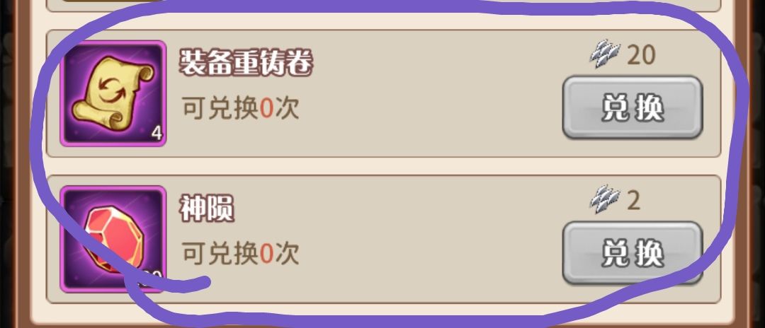 ⑤探险商店(没需求就不换,攒着后面有培养灵器的材料,灵器材料后期提升特别大,所有材料都很难获取,而且需求量极大,可以说是后期提升的核心,能拿就拿!)