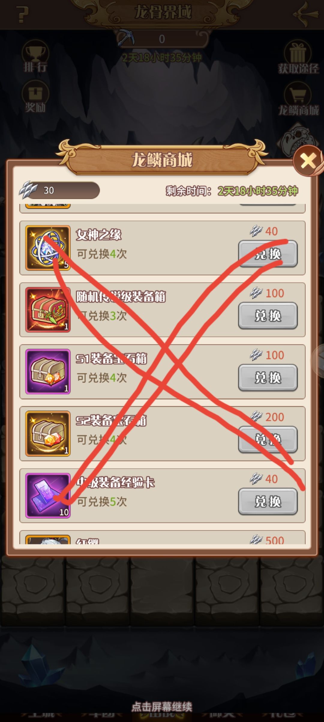 龙鳞商店(这个不要去换红装和升阶石,不划算,后期挂机就给。建议换重铸券和神陨,这个很划算的。灭创别想了500个太多了)