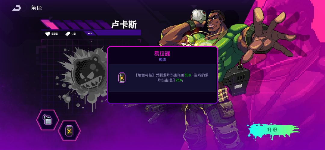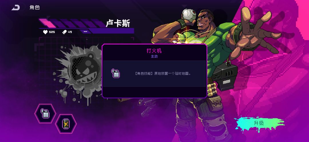 卢卡斯的技能代替了手雷的使用,能够获得更多更加丰富的资源,同时被动技能搭配上爆炸类的道具,如爆米花等,更是能够大幅度的提升自身的进攻能力。唯一的短板就是防御能力不怎么样,血量并不是特别突出,同时机动性也不高,特别需要纪念品或者道具的搭配。