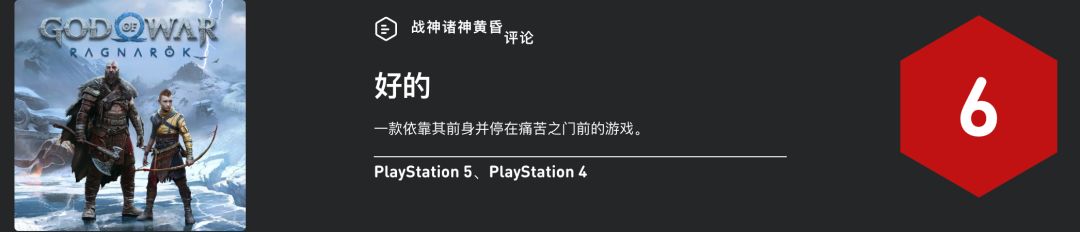 不过另一方面,IGN韩国则给出了6分的中评。IGN韩国认为本作是“过度依赖前作的矫饰之作”,玩家轮流扮演奎托斯和阿特柔斯,看着旅途上的每个人坦诚地展示自己的内心。在整个游戏过程中,所有的问题都可以归结为家庭或类似家庭的主题——并且像大多数家庭关系有缺憾的人一样,会引发致命的灾难,也就是诸神黄昏。20个小时里游戏一直在重复类似的主题,当然,重复和陈词滥调并不全是坏事,然而本作的演绎手法与前作完全没有变化,游戏设计也是如此。即使是保守地延续《战神》(2018)的内容,也可以包装地更新鲜,而本作却更像是《战神》(2018)的DLC。