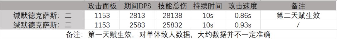 不过就算技能结束,只要之后的普攻击杀敌人同样能够触发第二效果。但是如果对出怪顺序并不熟悉在击杀敌人前缄默德克萨斯就有可能先暴毙,对我个人使用习惯来说把一个普攻输出并不优秀的处决者留在场上感觉上也怪怪的。