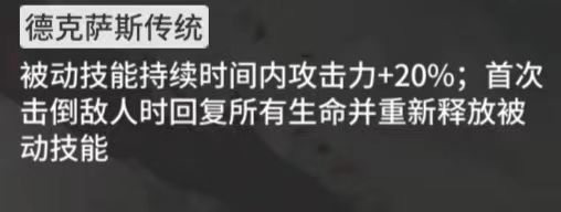 加攻、回血、技能再触发的多效果复合,总的来说第一天赋的效果是非常不错的,只是需要博士对出怪有一定了解,对于第二效果的触发倒也不必强求,把缄默德克萨斯留在场上导致下次出怪时再部署跟不上反而是得不偿失